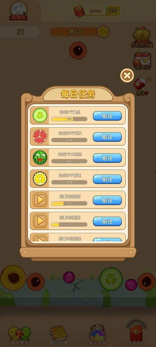 3. 升级解锁:随着游戏的进行,你可以通过积累分数来解锁更多有趣的瓜果和游戏道具。同时,还可以升级自己的“瓜民”等级,解锁更多挑战。